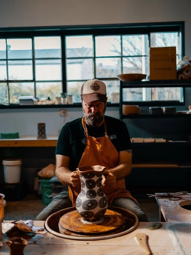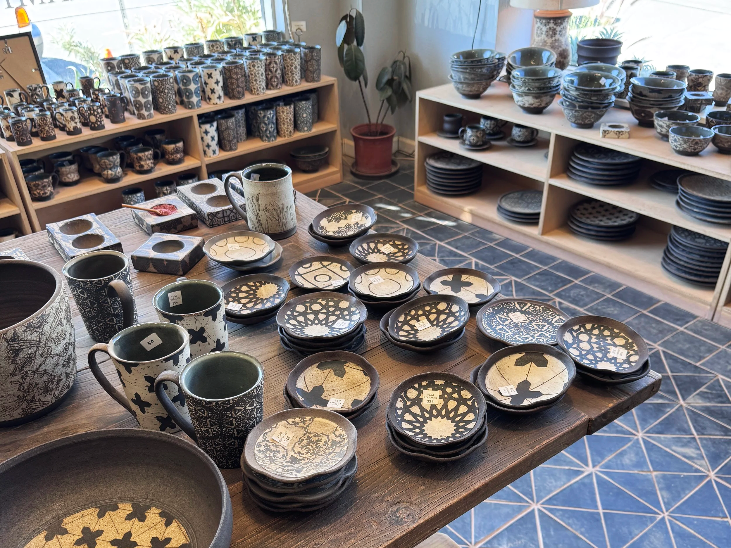 Nestled in the heart of the bourgeoning Warehouse District sits Petaluma Pottery, part production studio, part classroom, and part showroom. The owners at the center of that Venn diagram are Forrest Middleton and wife Beth Schaible, who first opened the business on the east side of Petaluma in 2018. In 2022, they moved to the current location at 301 2nd Street, where the business runs in tandem with FLM Ceramics and Beth’s letterpress, design and bookbinding studio. Forrest conceived of the model right out of grad school, recognizing he couldn’t make a living operating only as an artisan, and wanting to give back through education. Equal parts makers, educators, and shopkeepers, the owners both have very deep backgrounds in the world of craft that go beyond the local landscape. They met at Penland School of Craft in North Carolina, and Forrest explains that he is more of a dreamer, while Beth is more a nuts-and-bolts personality. When asked what he is most proud of, he shared, “that Beth and I can do this together, spending 24 hours a day together and genuinely not get tired of each other. “